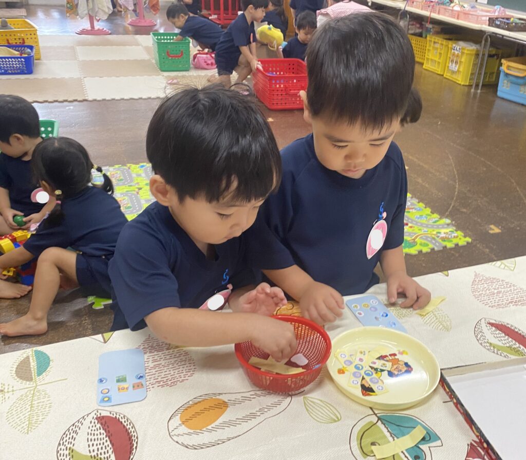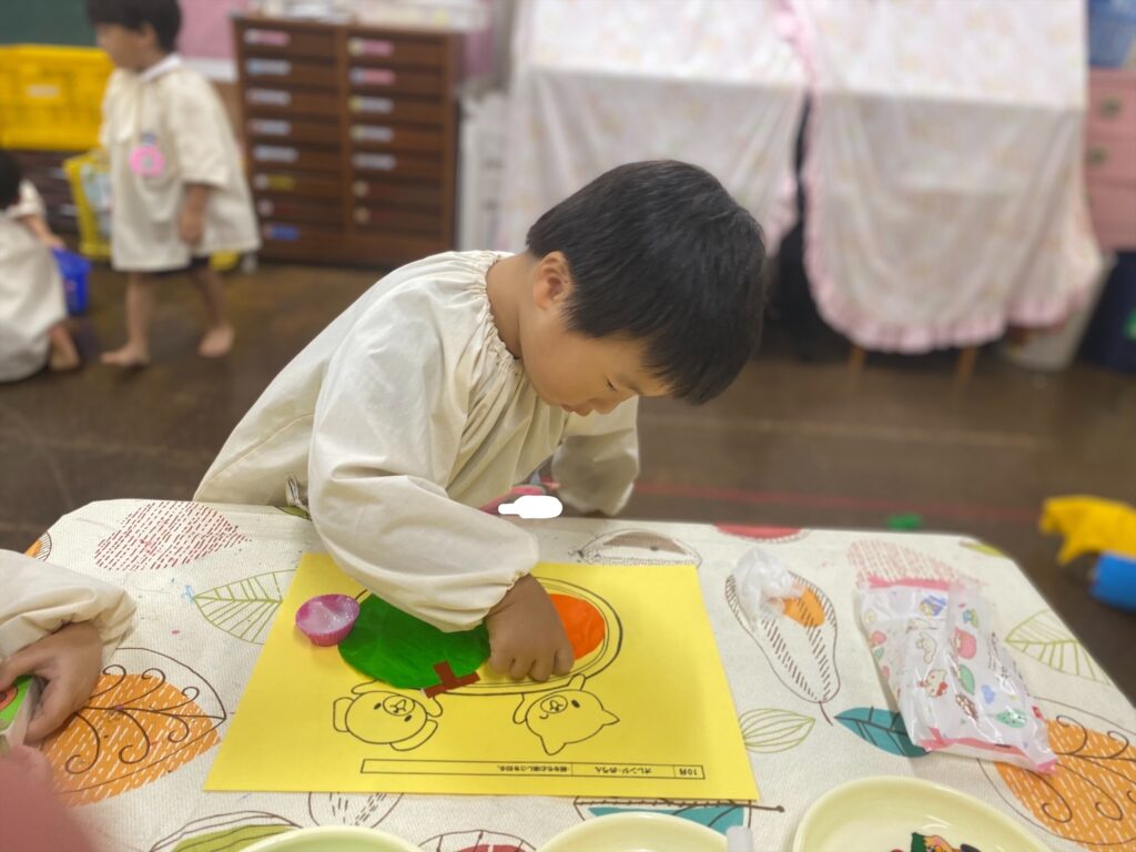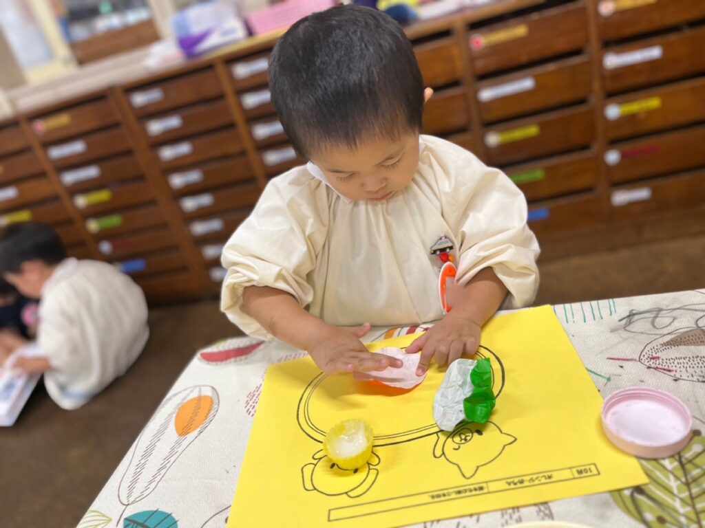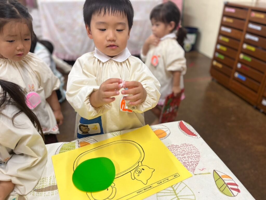 2学期になり手先も器用に使えるようになってきて、シールを剝がすことも上手になりました。