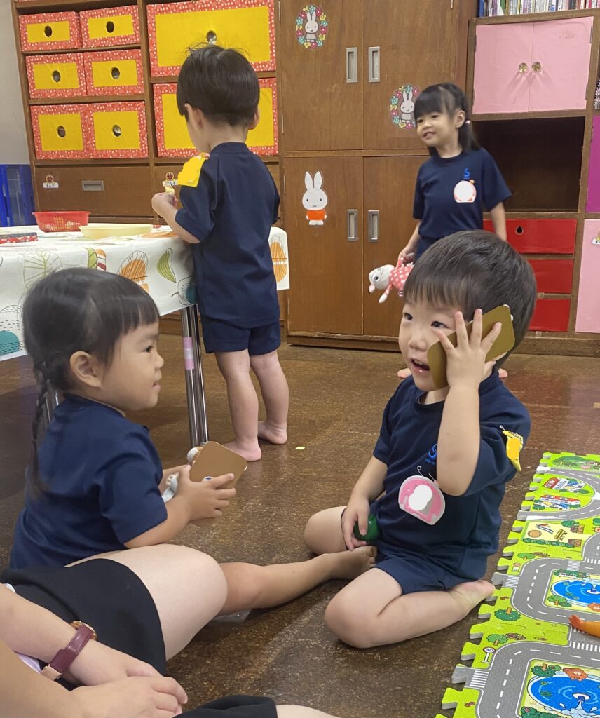 誰か始めると「わたしも!」「ぼくも!」とすぐに真似っこが始まります。