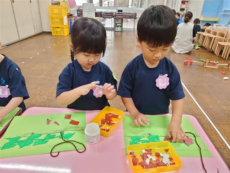 ちぎった折り紙を糊で貼って土を表現しました🌱