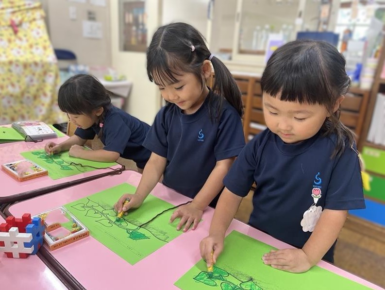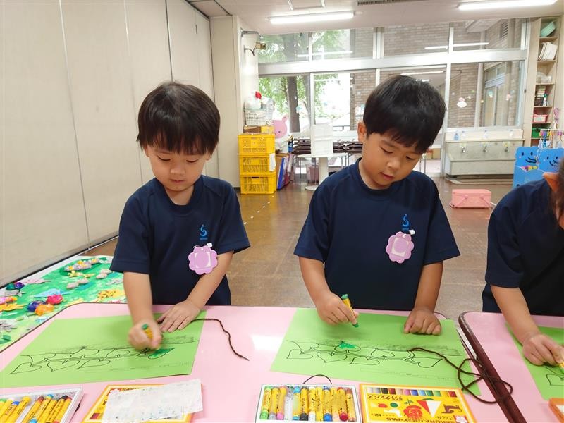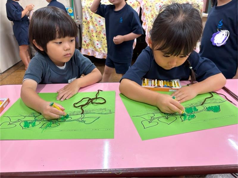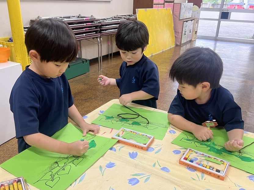 まず始めにクレパスでさつまいもの葉っぱの色塗りをしました🖍
