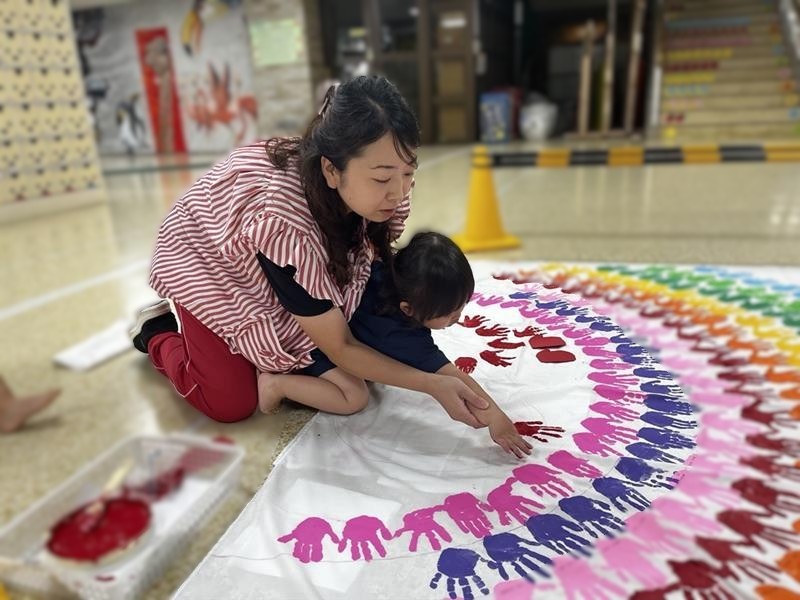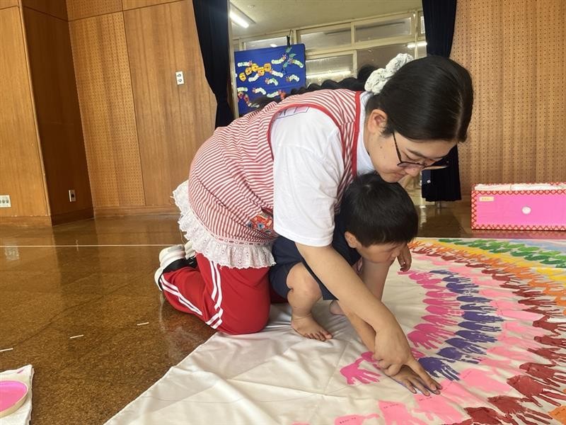 完成したのは大きな虹です🌈みんなの手で素敵な大きな虹が完成しました!
