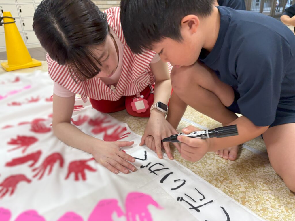 完成した旗には松組のお友達が文字を入れてくれましたよ✍