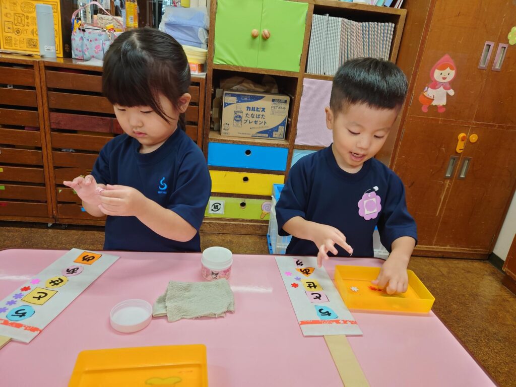 見本を見て並べたり、平仮名が分かり自分で並べたりできる子どももいましたね😲✨