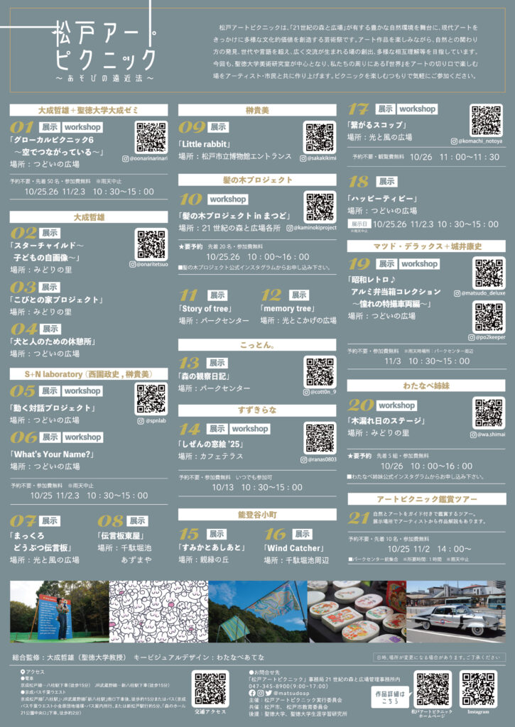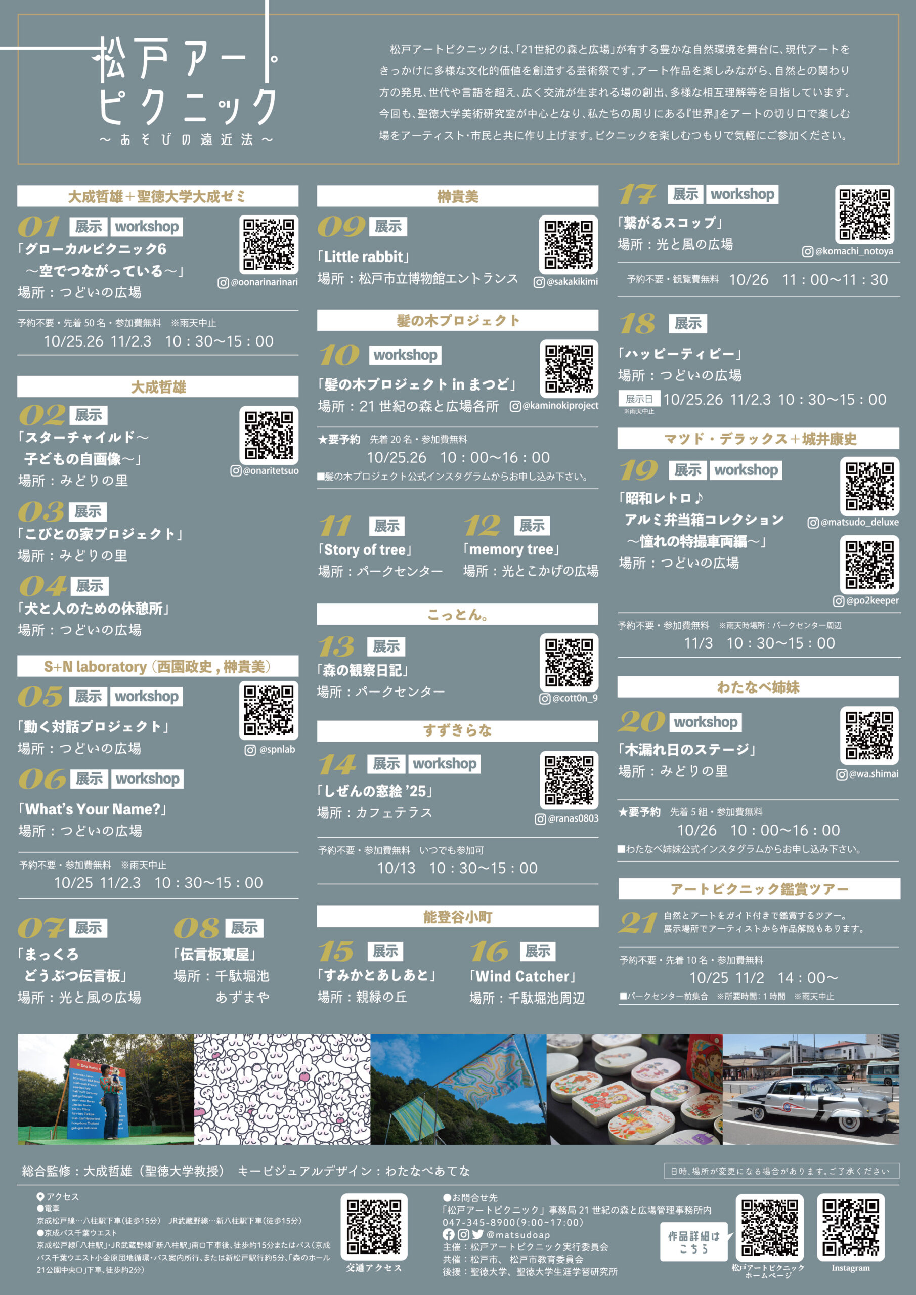 聖徳大学より、「松戸アートピクニック2025~あそびの遠近法~」(21世紀の森と広場【松戸市】)のお知らせです。ぜひご家族のみなさまでお出かけください。