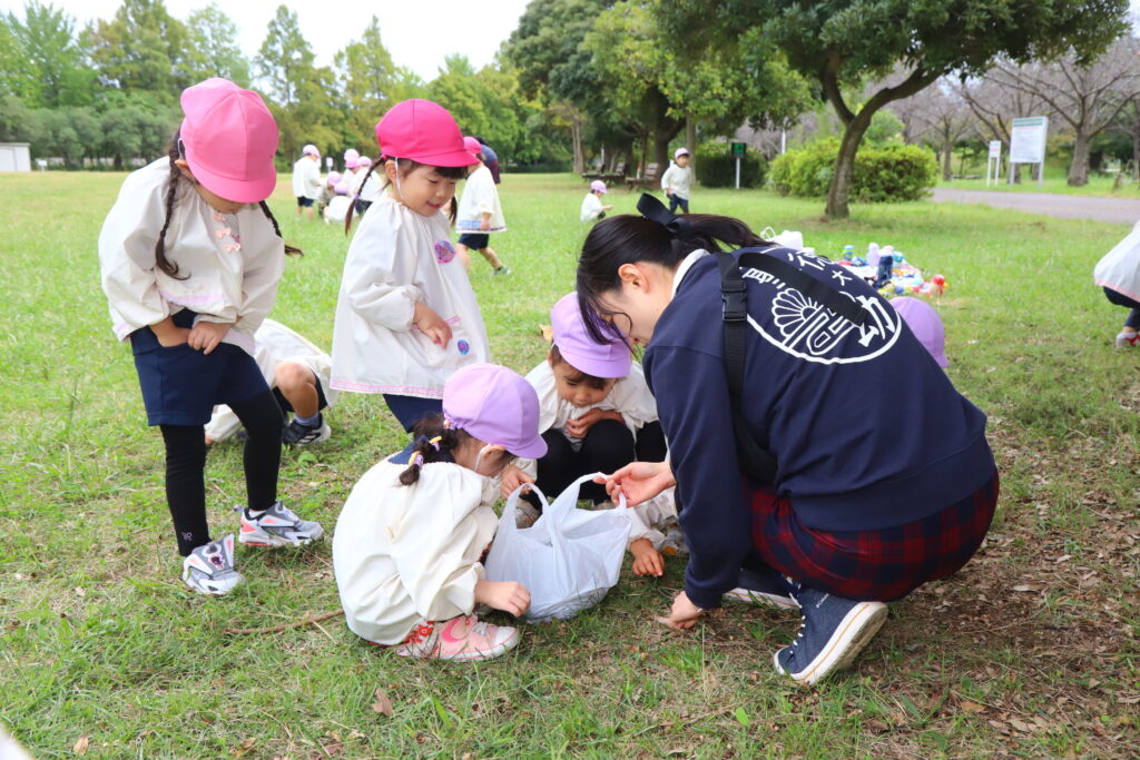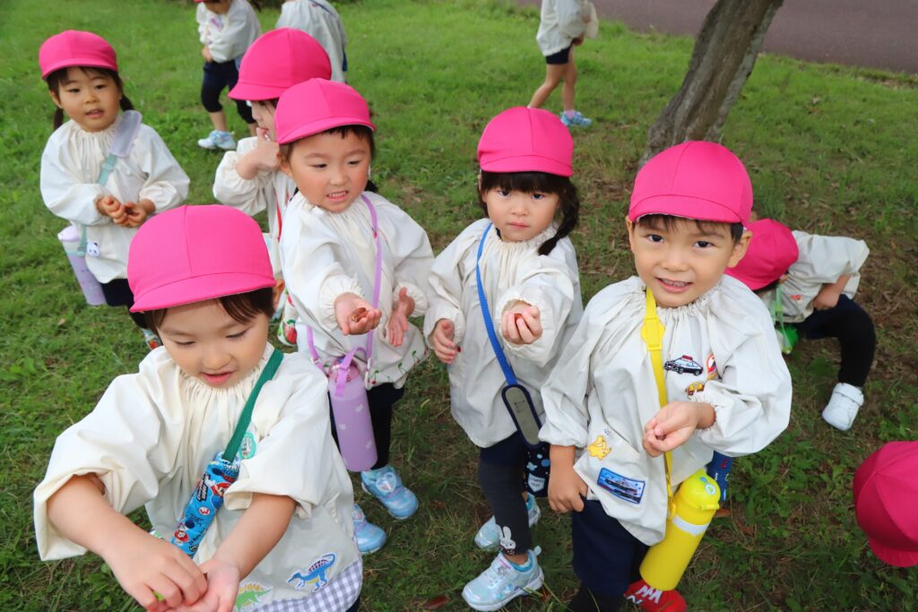 「見て!どんぐり!!」「小さいのもあった!」と喜んで拾っていましたね😄