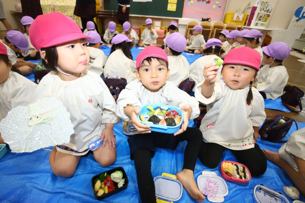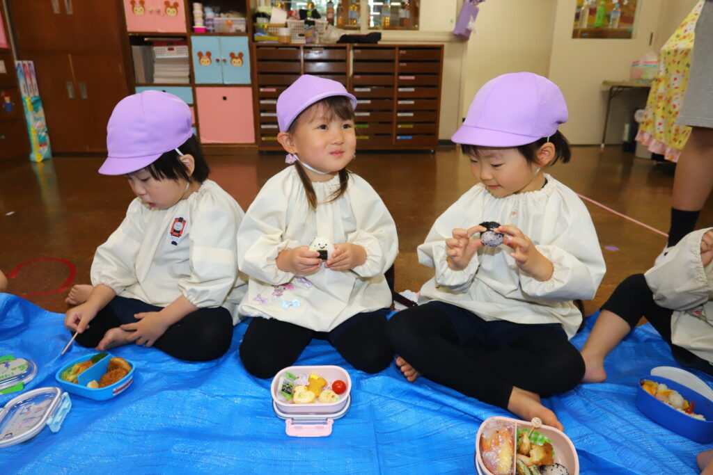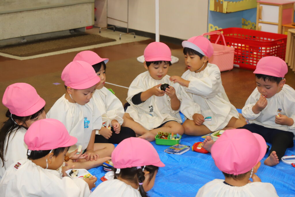 クラスごとにみんなでレジャーシートに座っていただきました🤗✨