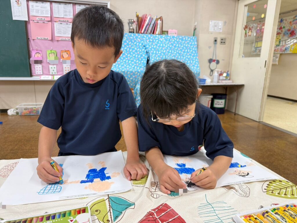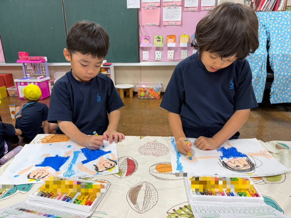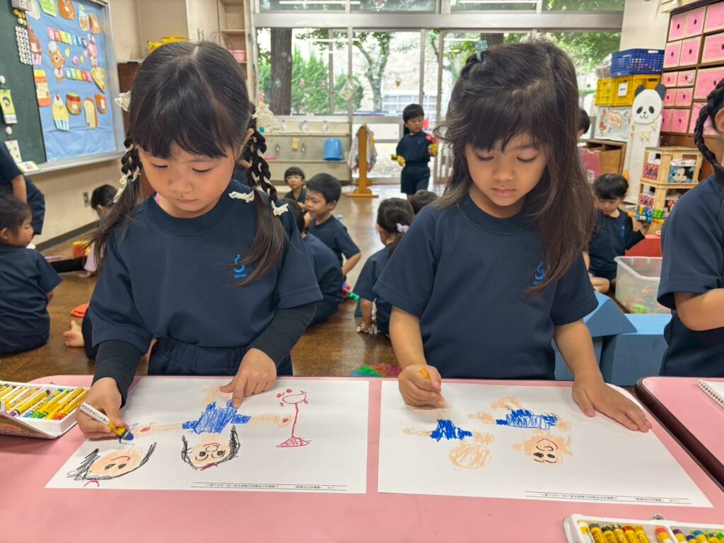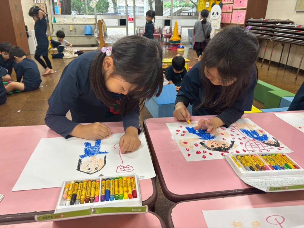 『かけっこ1番だったんだ!』『〇〇ちゃんと走ったよね!』『玉入れめっちゃ頑張ったよ!』『鳴子持って踊るの楽しかったな』と運動会を振り返りながら描くことができました🌟