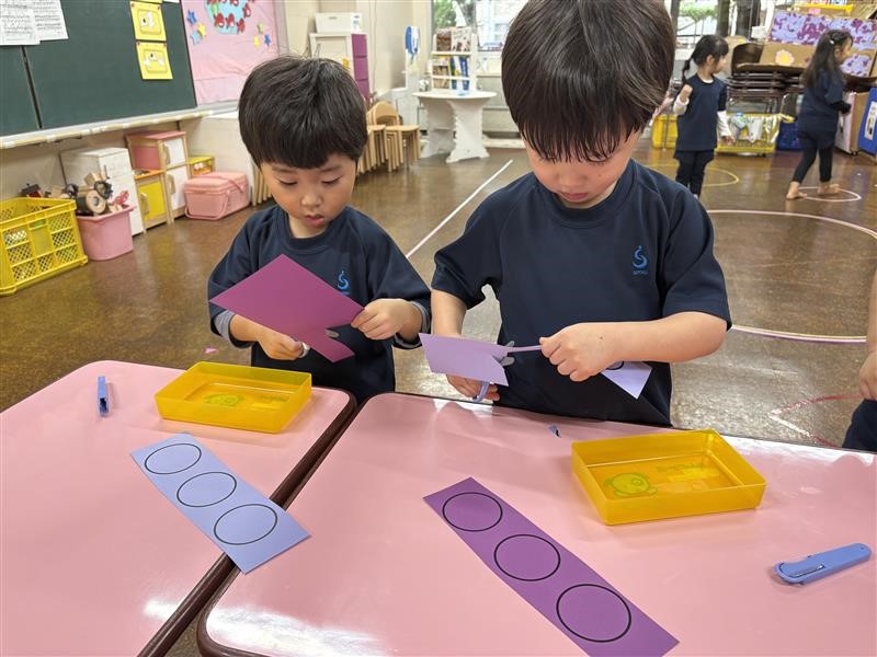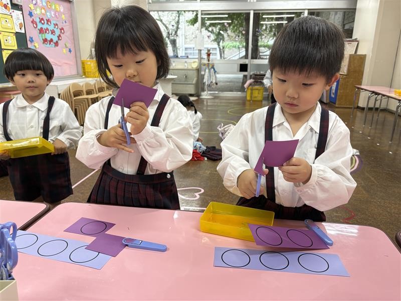 はさみを使って丸を切り、構成することをねらいとしています!