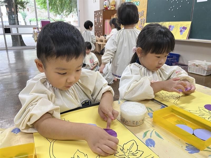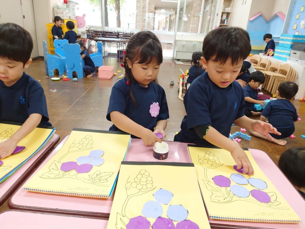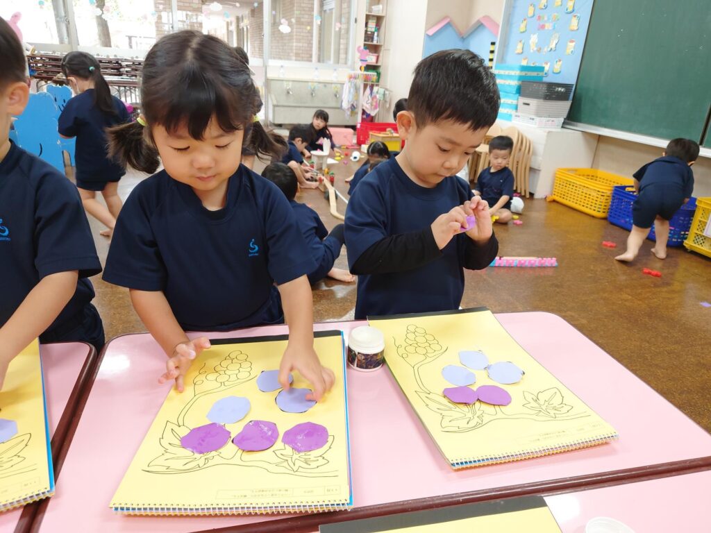 3歳児桜組の11月の製作は「ぶどう」です🍇