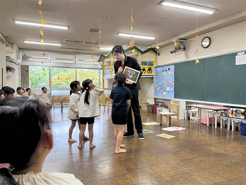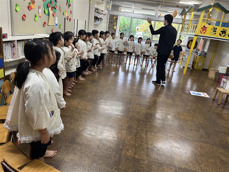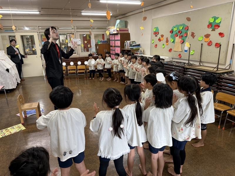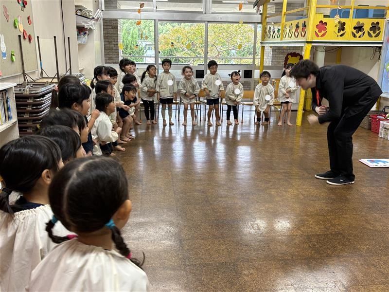 幼稚園に講師の方が来園し、子どもたちに楽しく英語を教えてくれました。