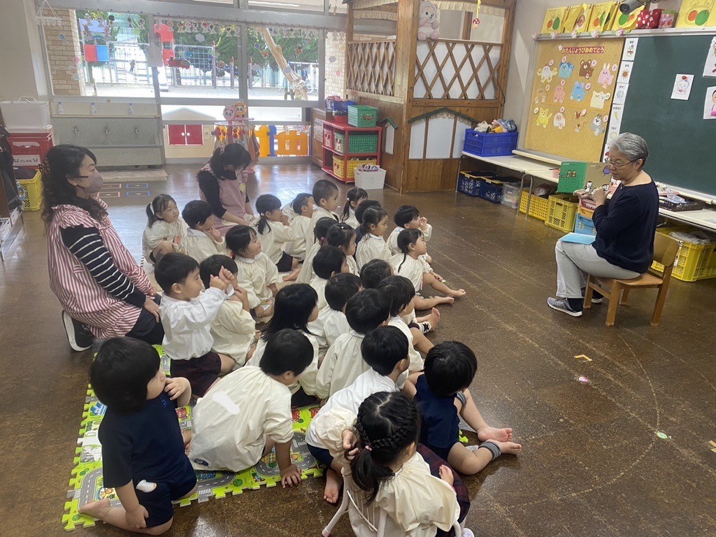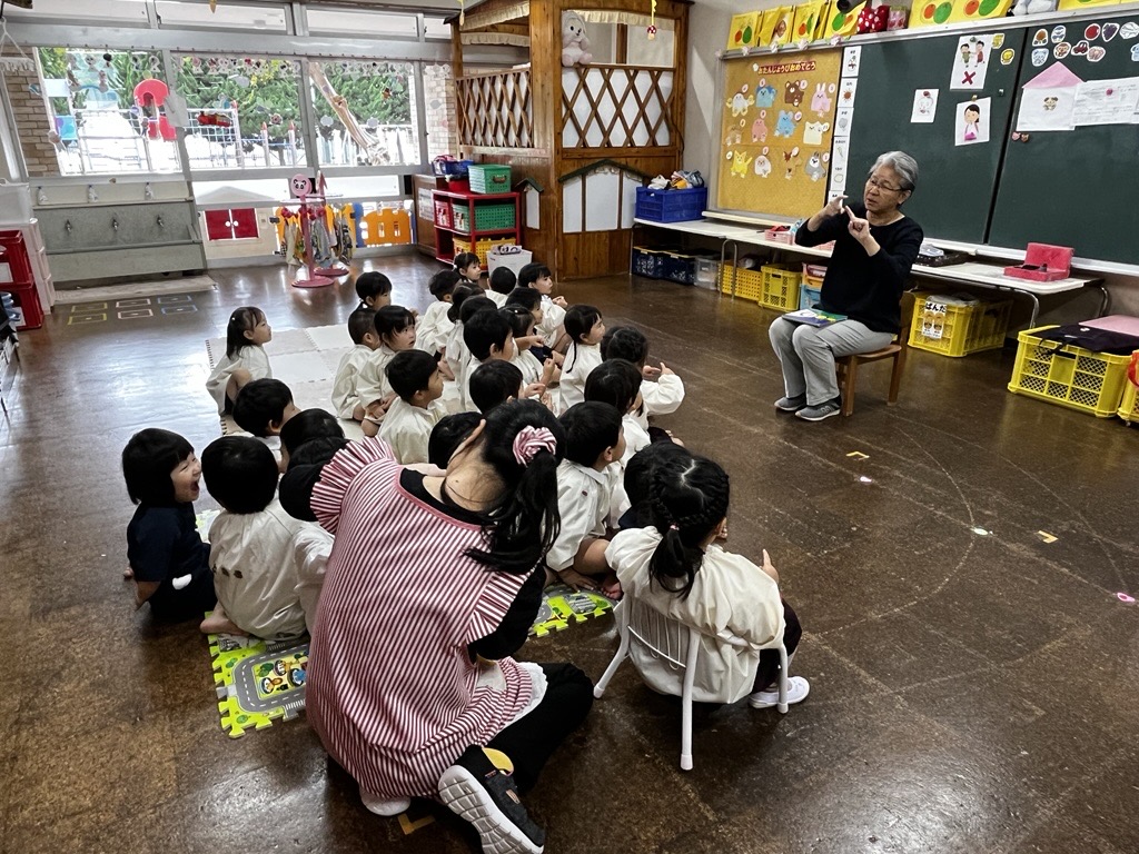 園長先生がお部屋で手あそびをして絵本を読んでくださいました📖