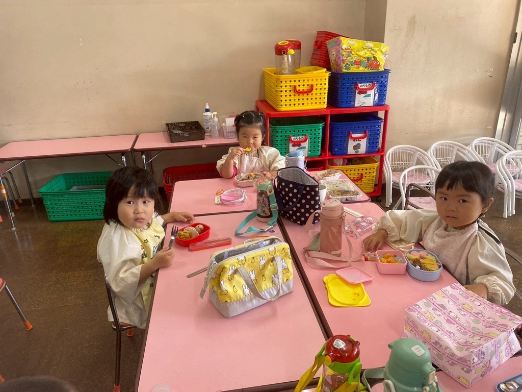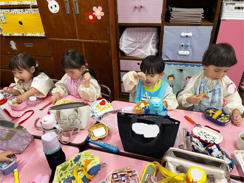 楽しみにしていた初めて幼稚園で食べるお弁当の時間です🍱