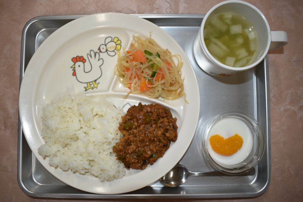 11/13 ジャージャー丼 白菜の中華スープ 中華風春雨サラダ 杏仁豆腐