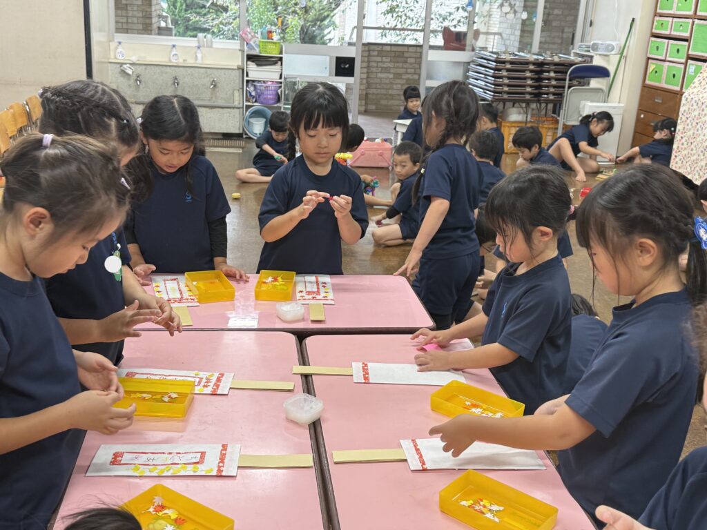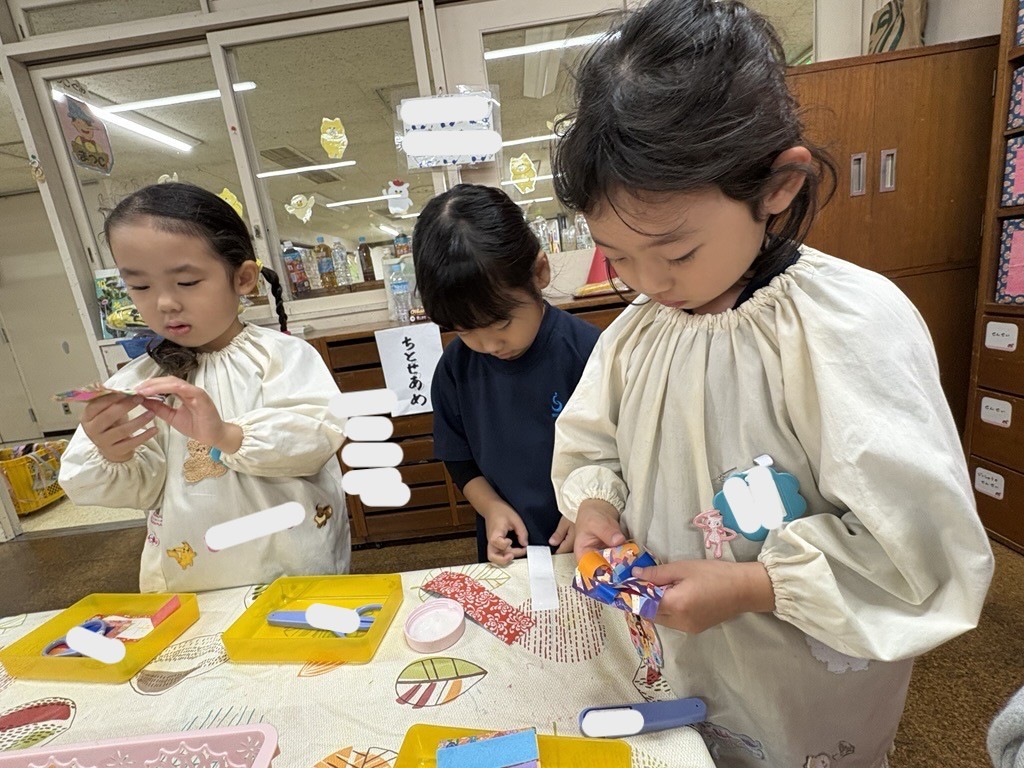 5歳児松組では、ちとせあめの袋の製作をしました👏