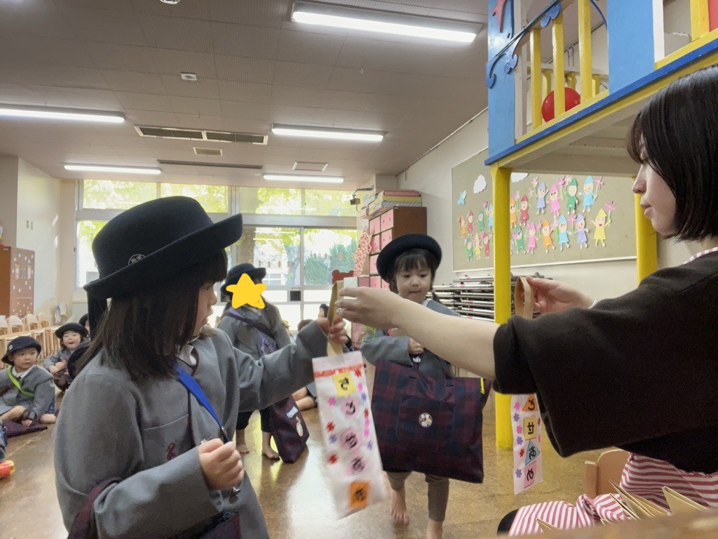 先生からちとせあめの袋をもらうと、「この中にあめが入っているんだねー!」「はやく食べたい!」と話している様子がありました☺️