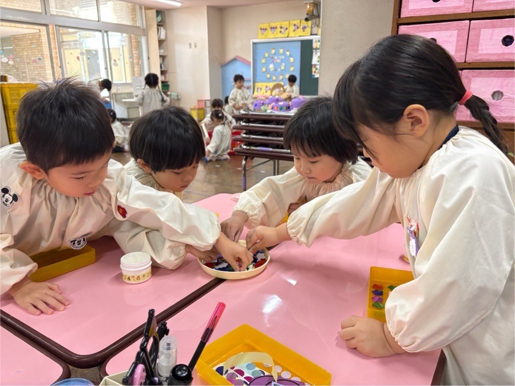 「いつ使うの~?」と話す子どもたちに、クリスマス会だということを伝えると「はやく被りたいねー!」「クリスマス会楽しみ✨」と期待を高めていました🎵