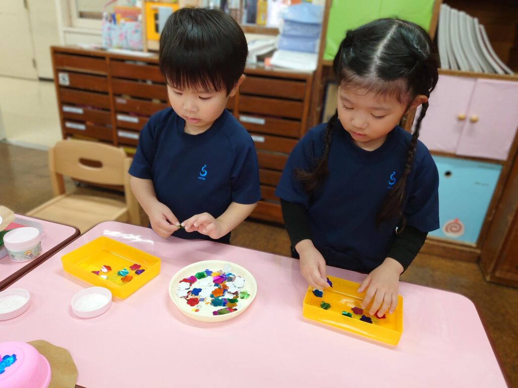 たくさんあるお花のなかから、自分で10個数えて貼りましたよ🫶🏻