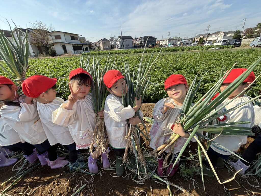 今日収穫したネギは幼稚園のお友だちみんなが1本ずつ持ち帰ります!