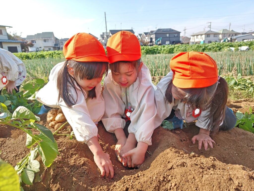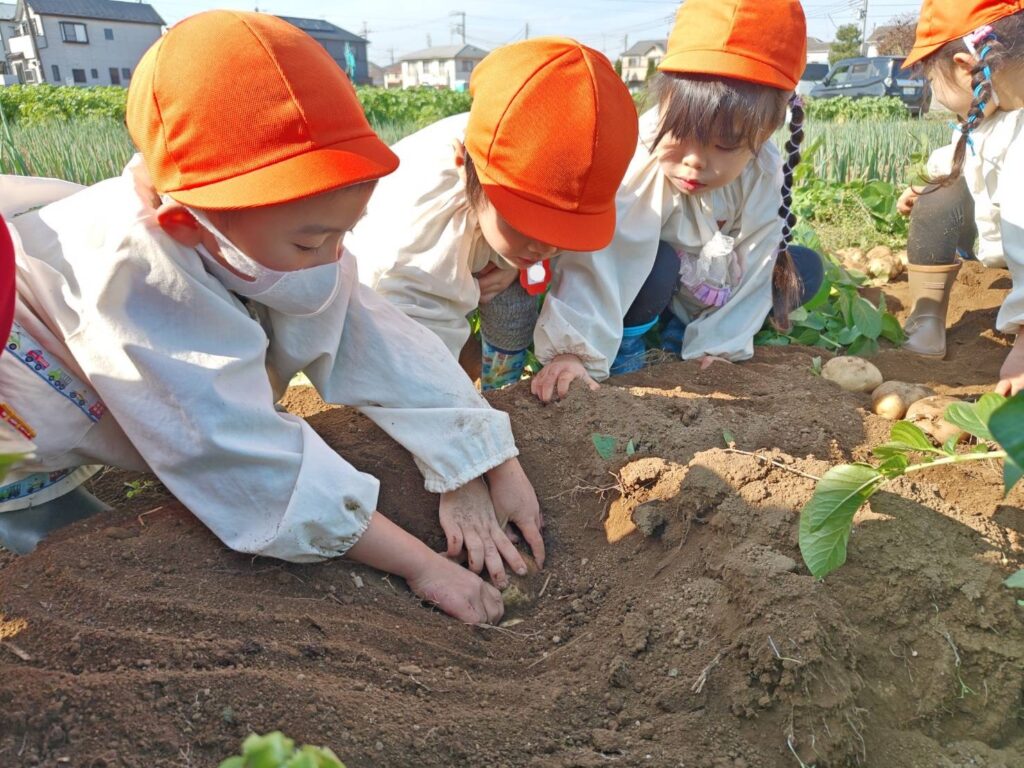 土をかき分けて、うんとこしょ、どっこいしょ…大きいじゃがいもや小さいじゃがいもたくさん獲れました🌝