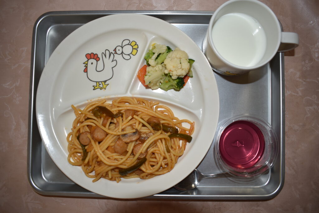 12/4 ナポリタンスパゲッティ ミルク 花野菜サラダ ぶどうゼリー