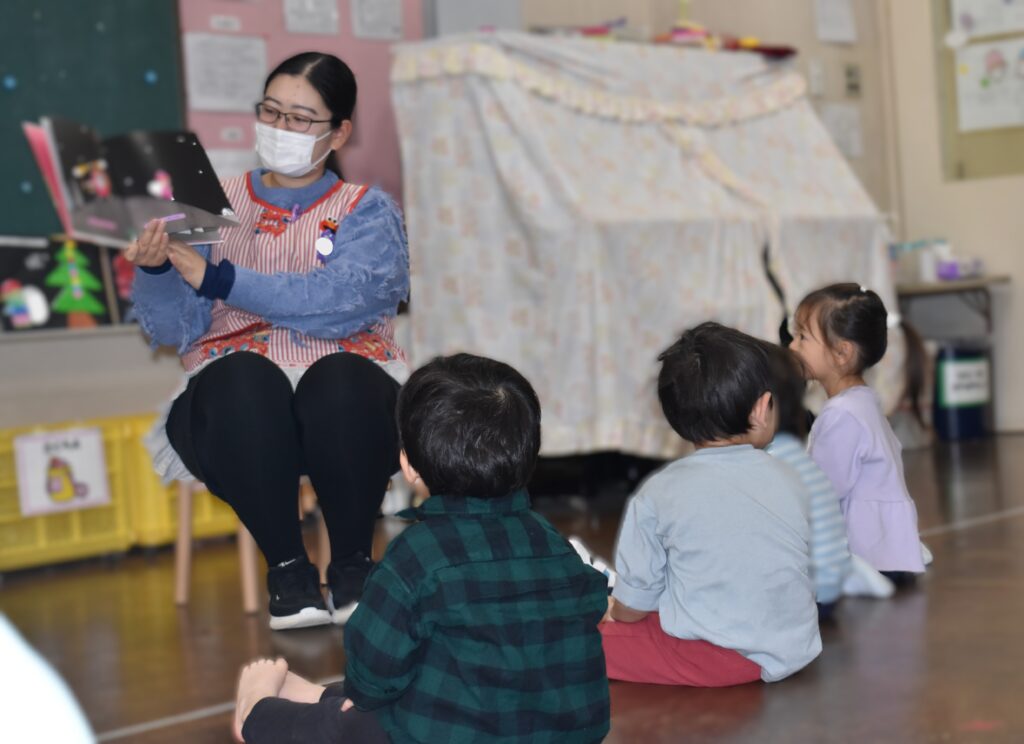 次に「はじまるよ」の手あそびをして、絵本「まどから☆おくりもの」を見ました📚🎄