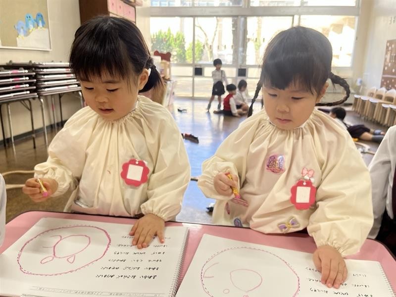 先生やお友だちと一緒に歌いながら描きましたよ💖