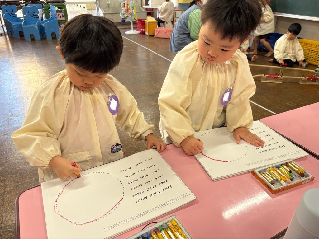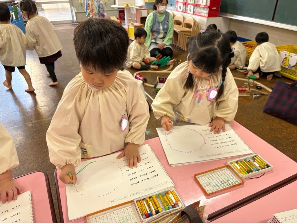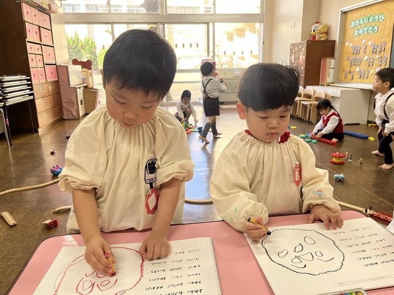 3歳児 桜組は1月の描画「アンパンマンの絵描き歌」をしました🎵