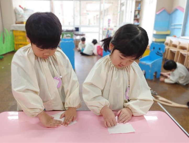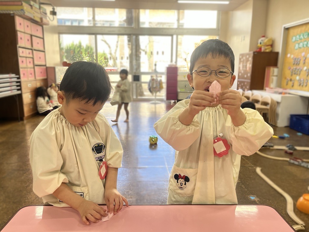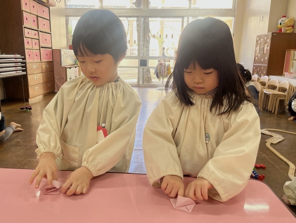 角を合わせたり紙を開いてつぶしたりと難しいところもありましたが完成しました💖