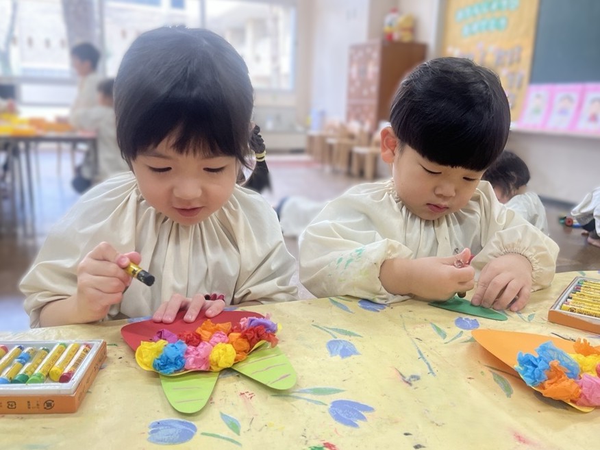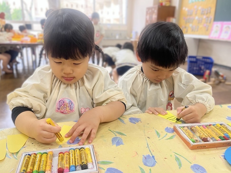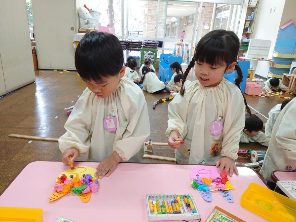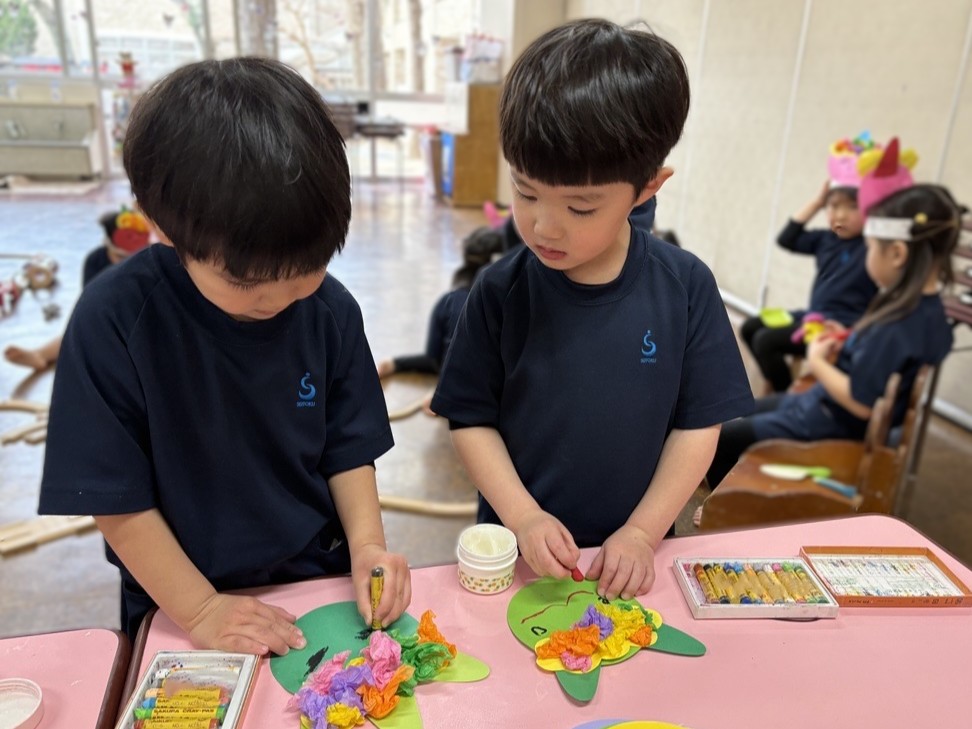 「怖い鬼にする!」「私はこんな顔!」とお友だちと見せ合い話しながら製作できました😊