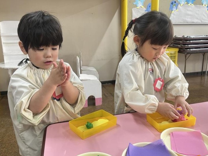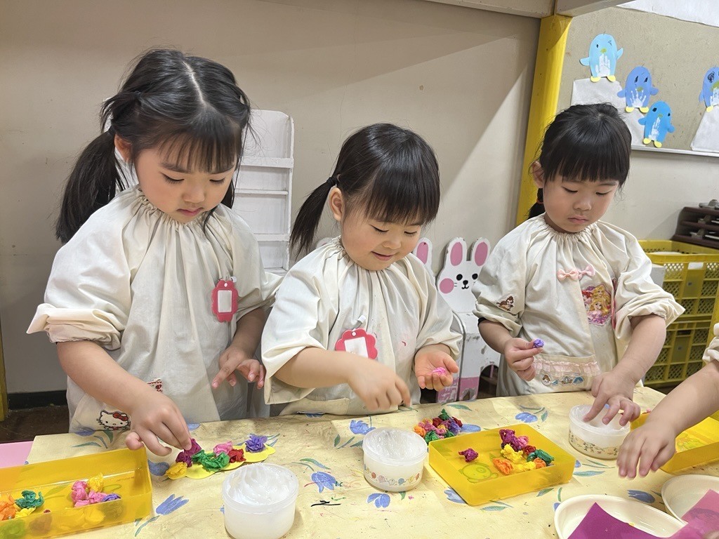 手のひらや指を使うことで手指機能が育ち、クレパスや箸の扱いの上達に繋がります✨