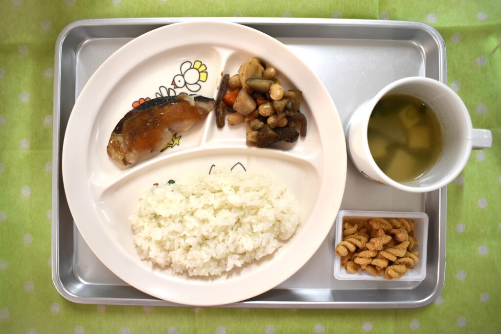 1/28 なめしごはん 白菜の味噌汁 白身魚の磯部焼き 筑前煮 みかんヨーグルト