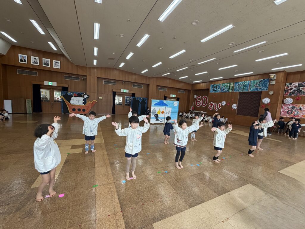 リズムあそびでは【ふらいぱんじいさん】の絵本より梅組の子どもたちが役になりきってセリフの掛け合いをしたり音楽に合わせて踊ったりしています🎶