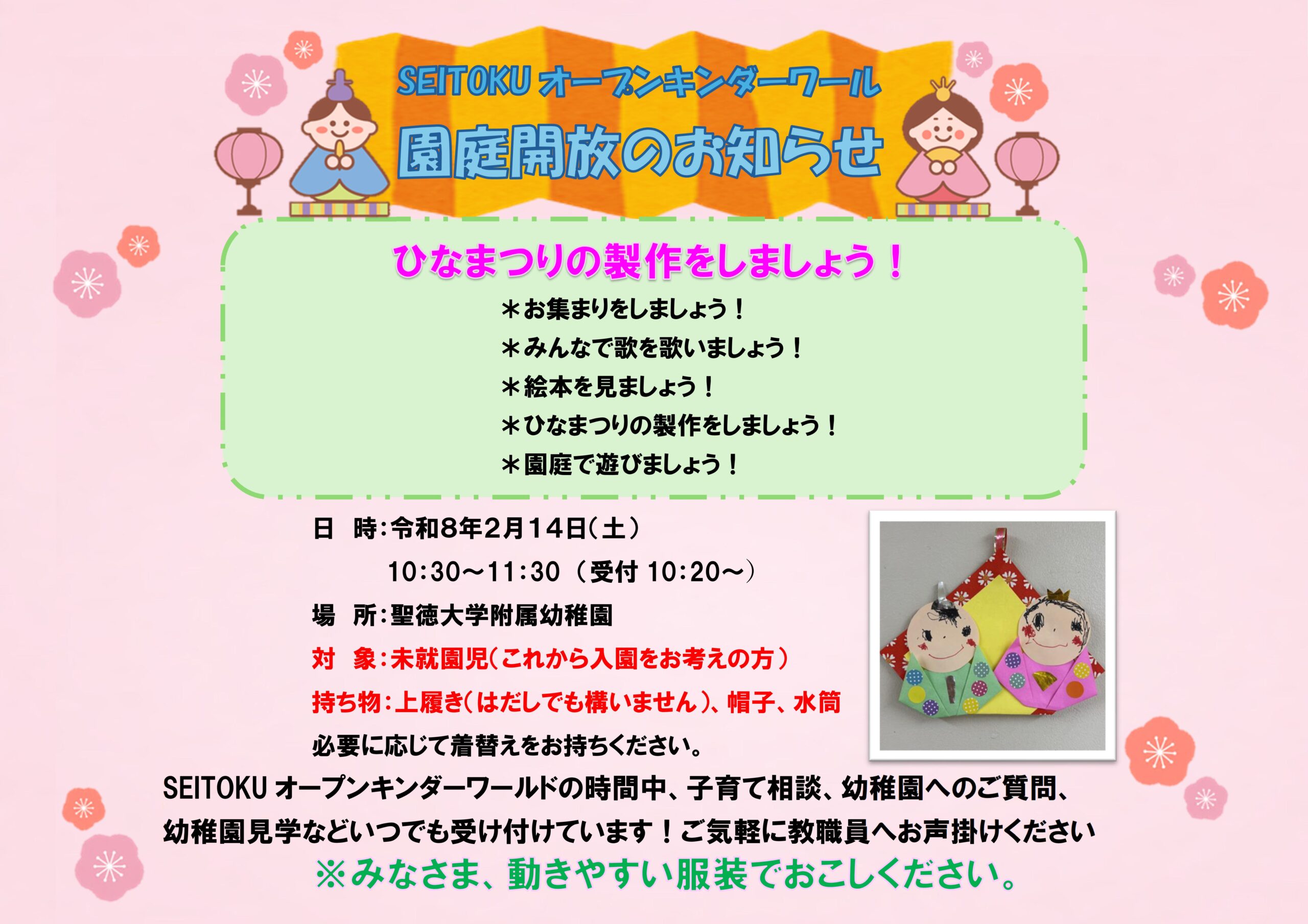 2/14(土)開催★SEITOKUオープンキンダーワールドのお申込みフォーム