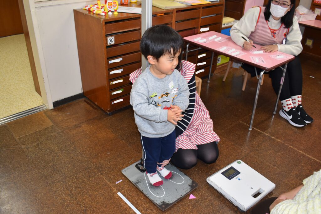 初めに身長と体重を計りました。大きくなって嬉しそうなお友だちもいましたね😊