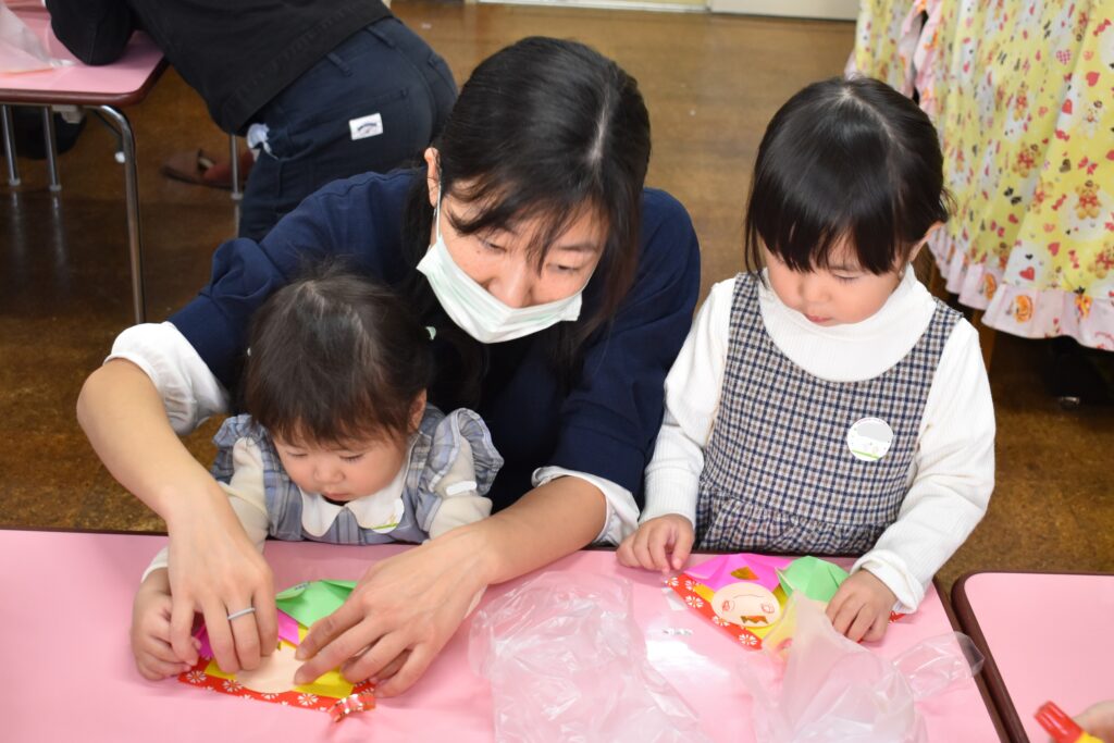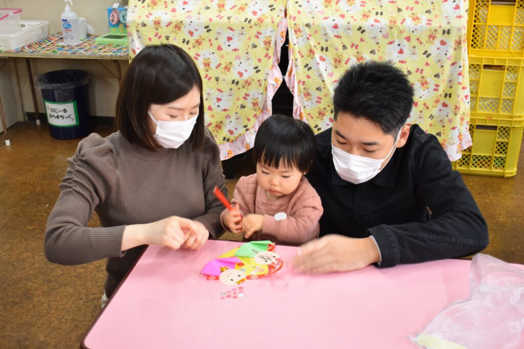 本日の園庭開放では、ひなまつりの製作をしました🎎