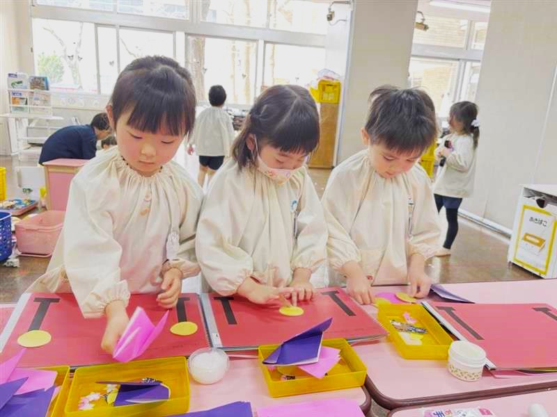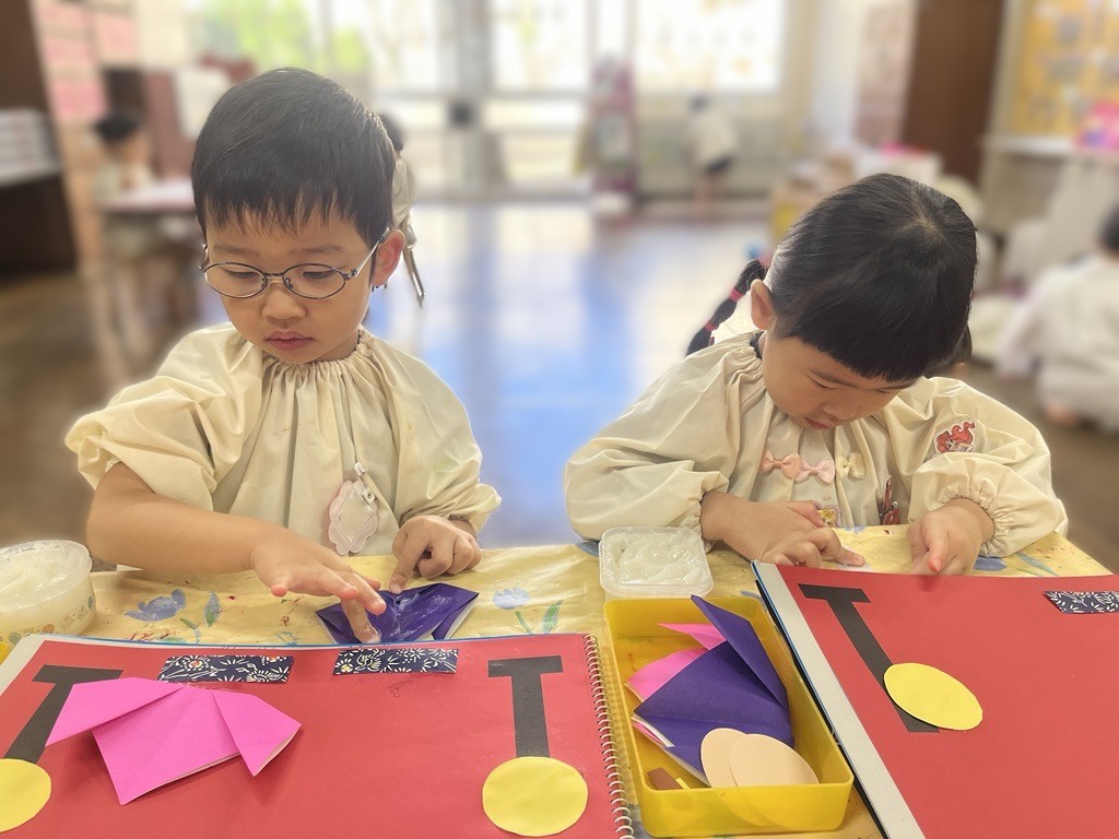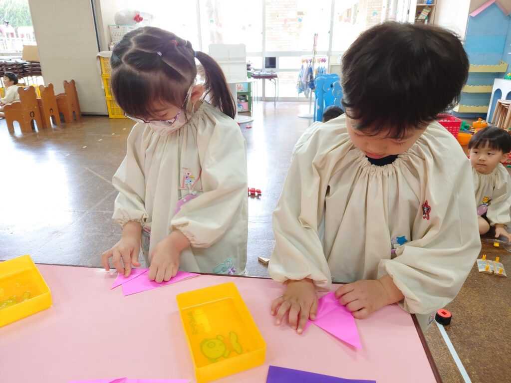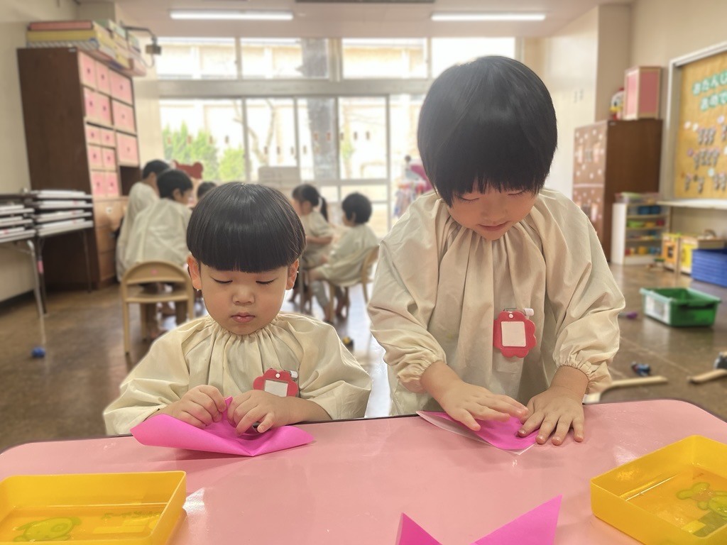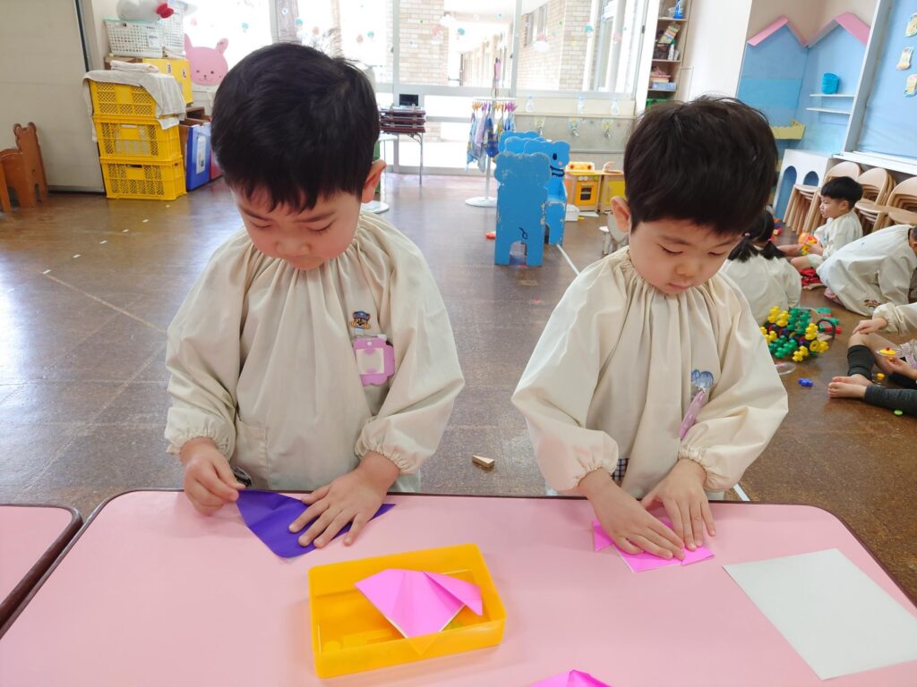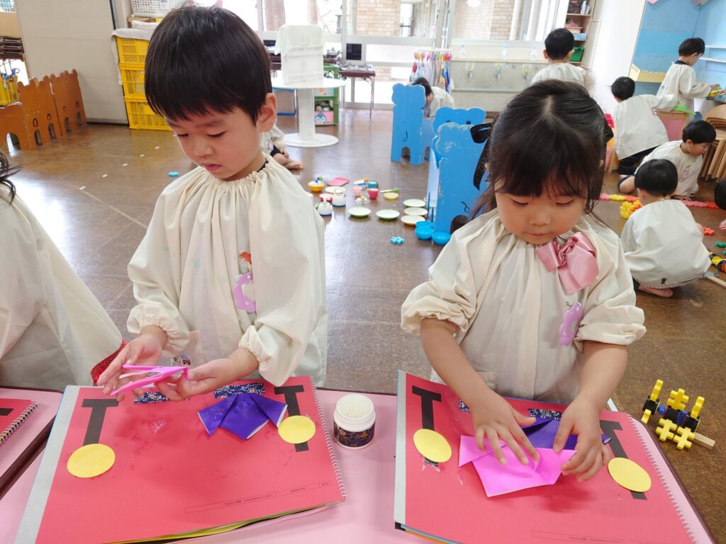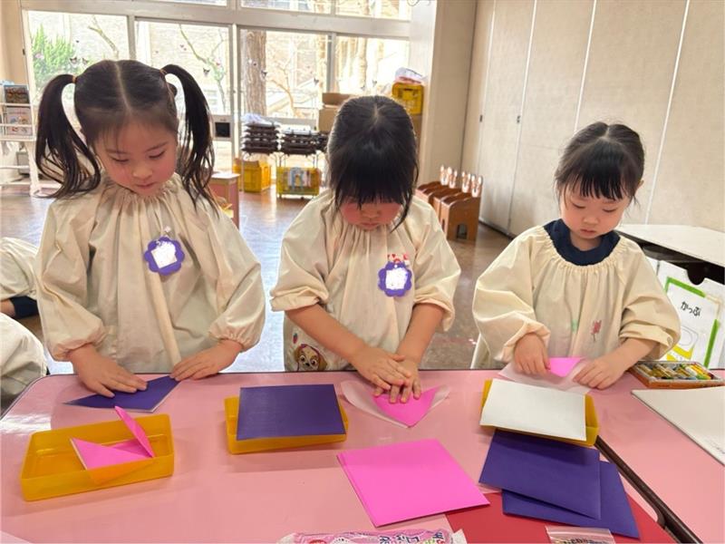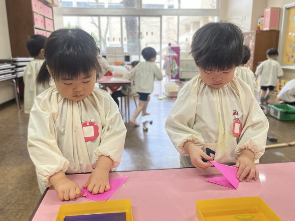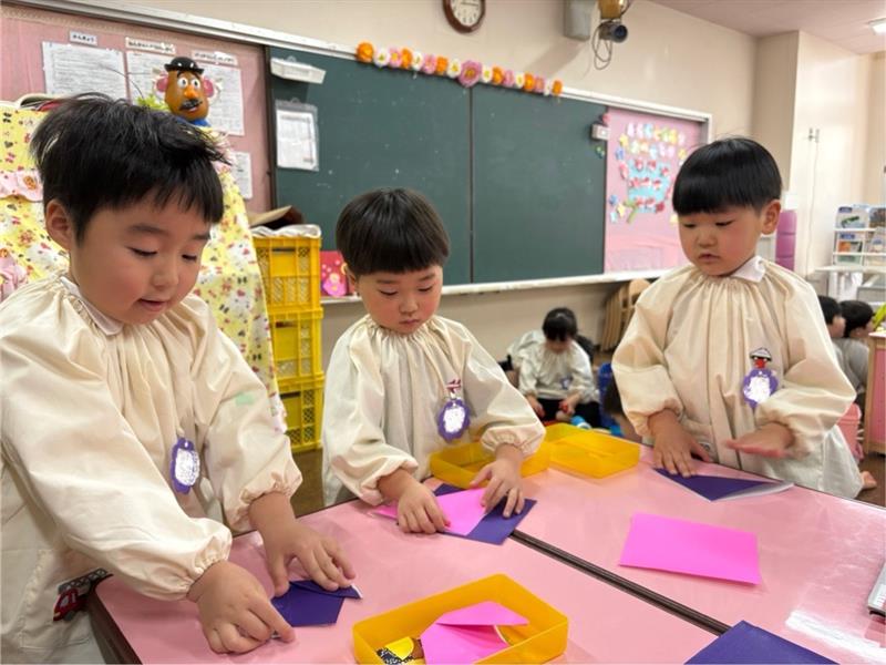 3学期になり、折り紙の経験が増えたことで角を合わせて折ることができるようになってきましたね👏