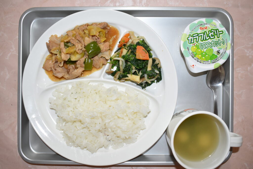 3/4 ごはん 豆腐の中華スープ 回鍋肉 中華風和え物 マスカットゼリー