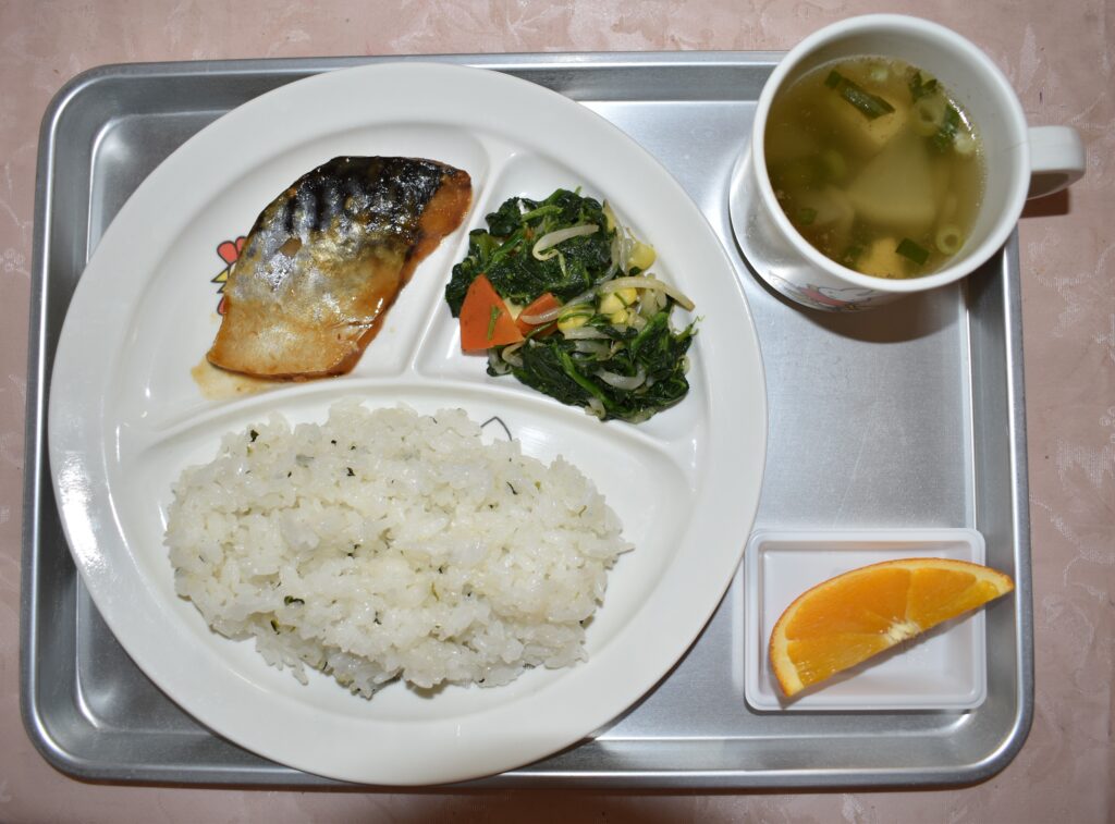 3/9 なめし けんちん汁 さばの味噌煮 ポパイサラダ オレンジ