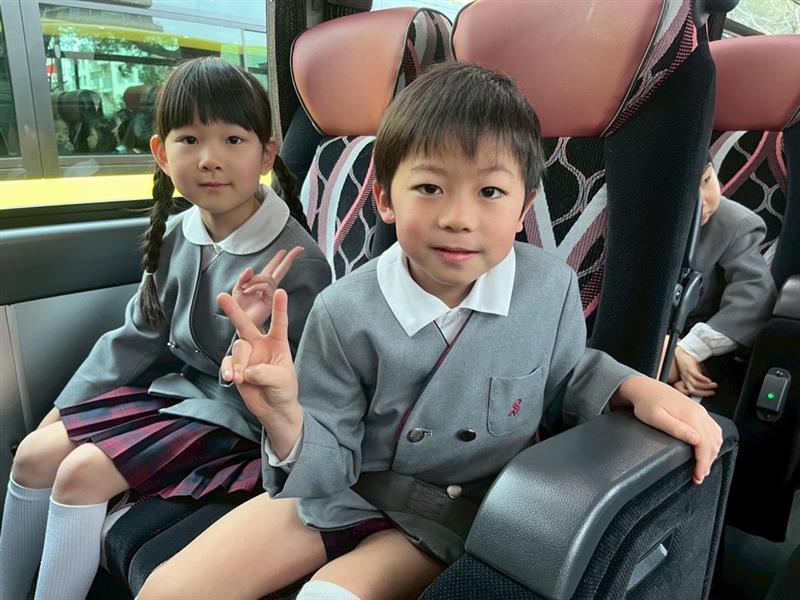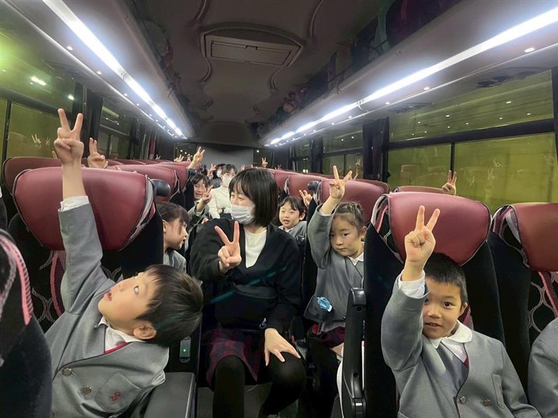 幼稚園から黄色いはとバスに乗って行きました。おうちの方も手を振って見送ってくださいました👋