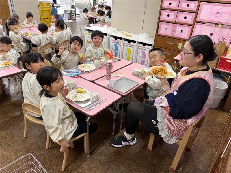 2月26日(木)には、おわかれ遠足に向けてグループごとに先生たちと給食をいただきました👏