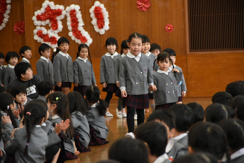 後ろの扉から3月の誕生児が入場します👦👧