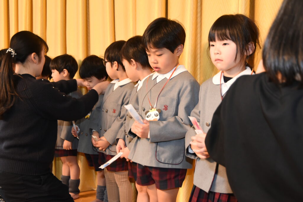 担任の先生から3月生まれのお友だちを紹介してもらい、ペンダントと歯ブラシのプレゼントをいただきました🎁大切に使ってくださいね☺