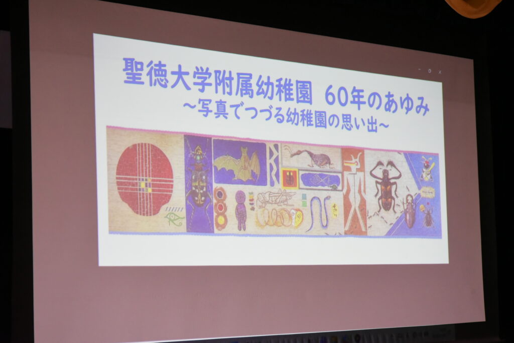 今年、聖徳幼稚園も60周年を迎えたので、広瀬副園長先生のお話を聞きながらスライドショーを見ました👀幼稚園のことを知ることができましたね☺