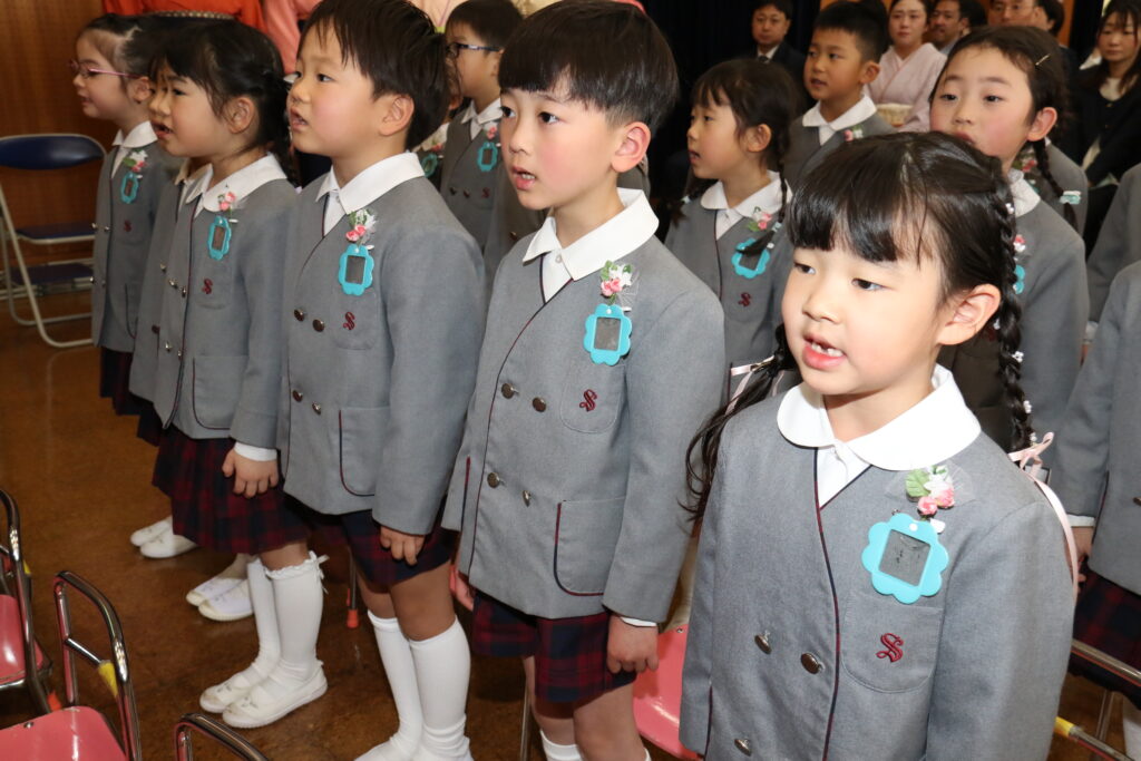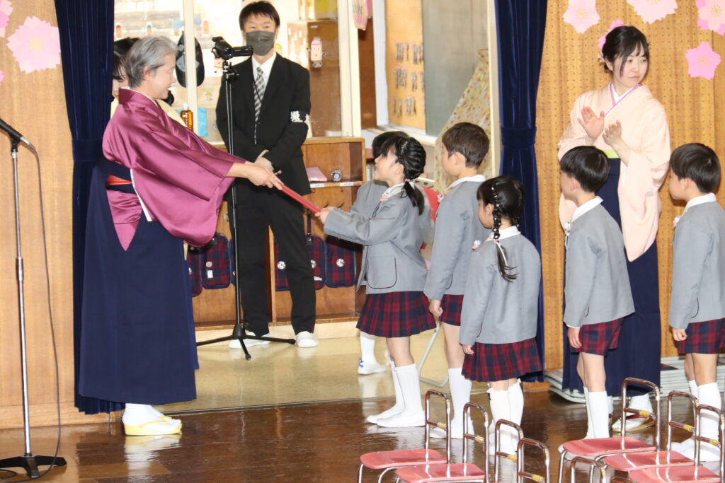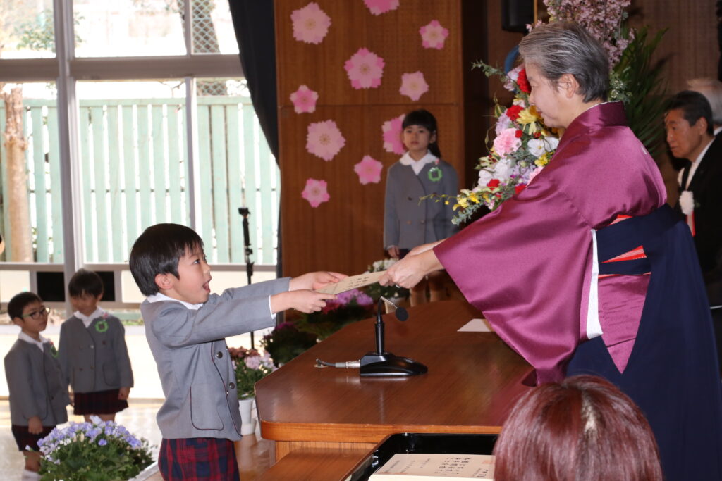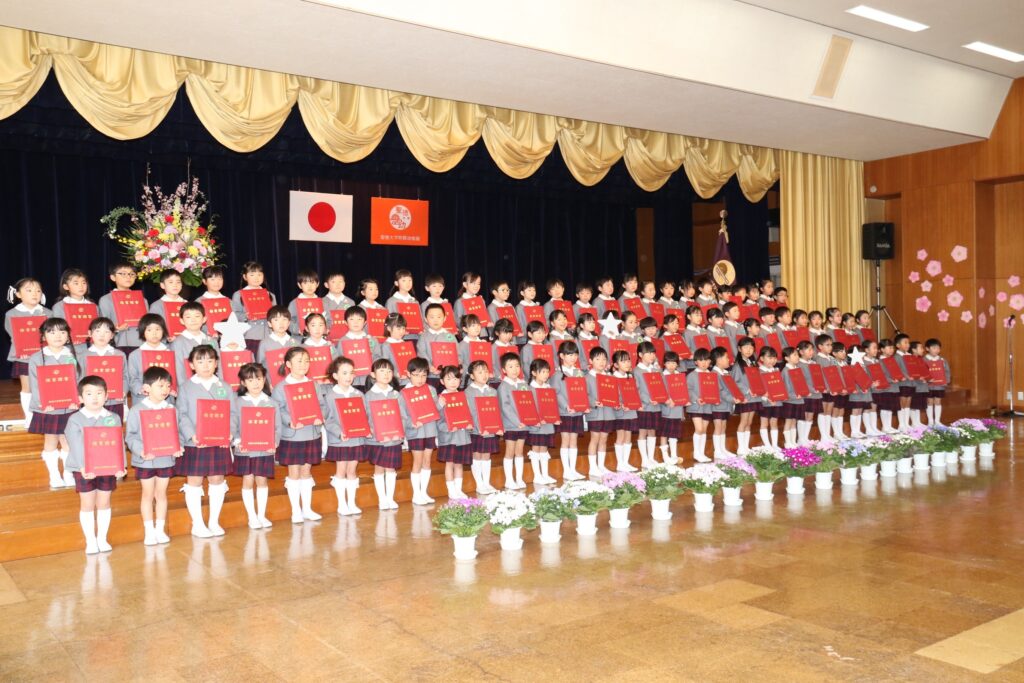 国歌や園歌をうたい、保育証書を園長先生からいただきます。
