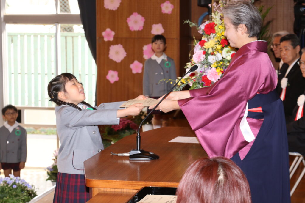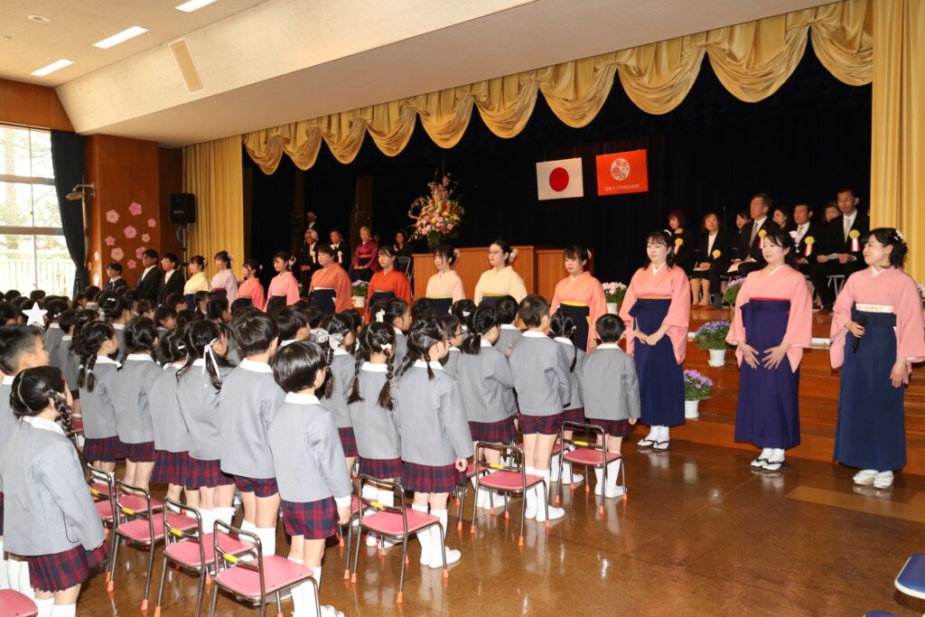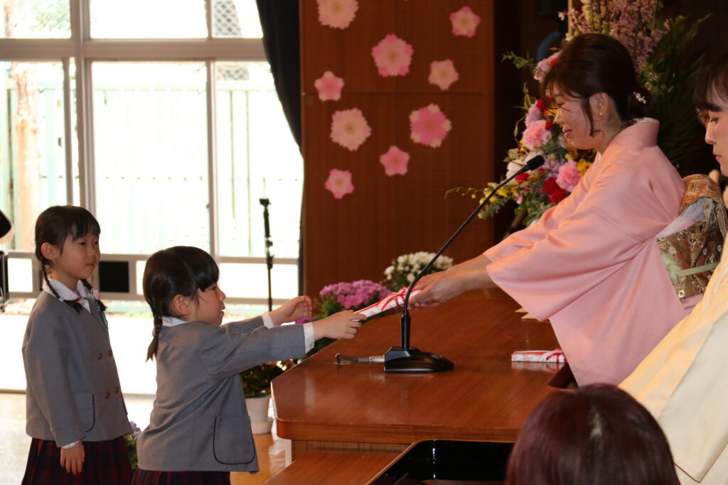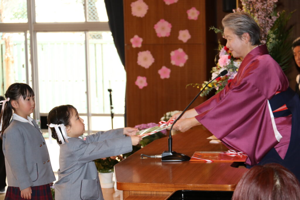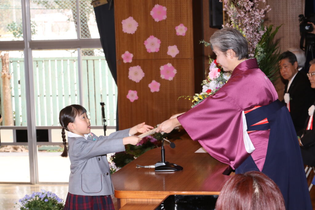 国歌や園歌をうたい、保育証書を園長先生からいただきます。