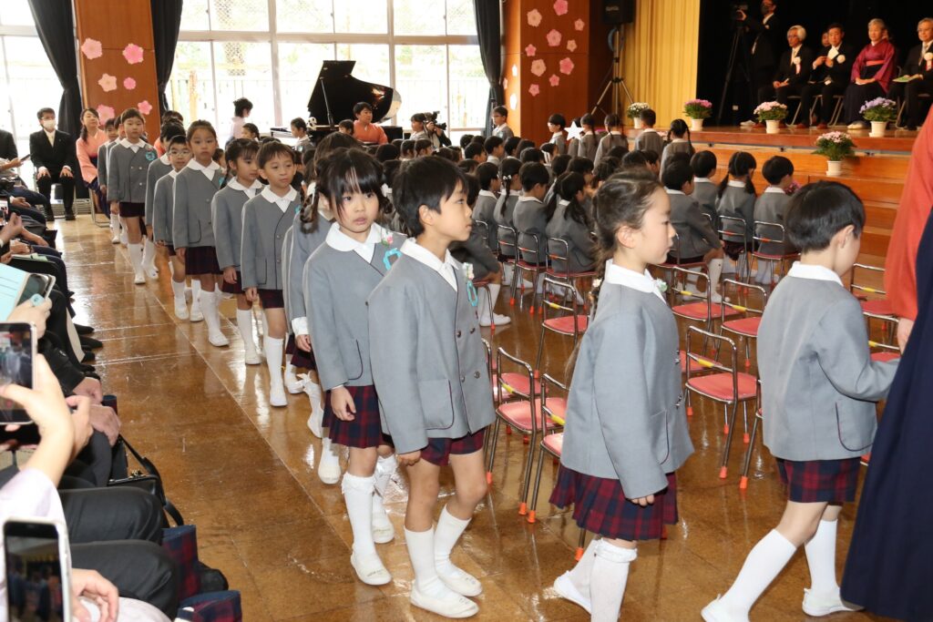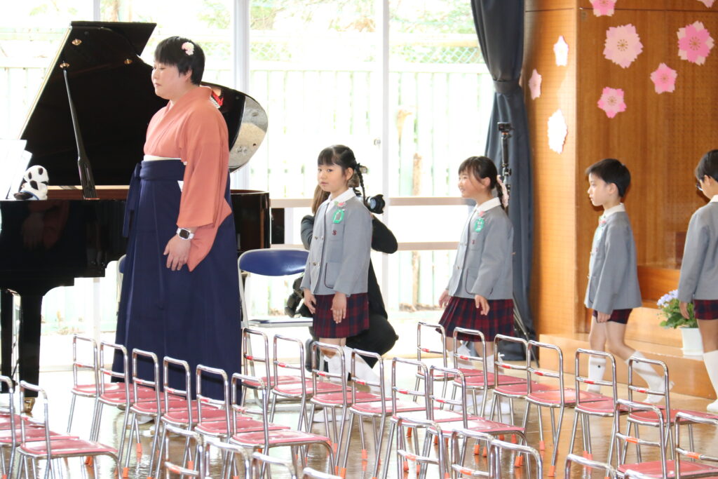 保育証書授与式が閉幕し、ピアノに合わせ卒園生が退場します。