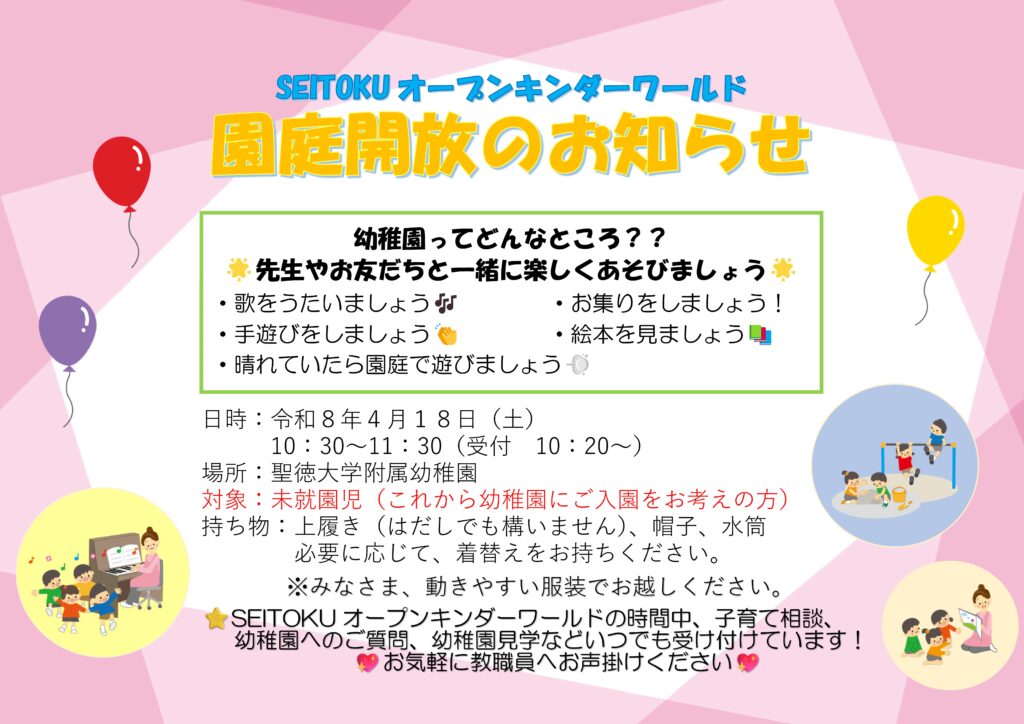 4/18(土)開催★SEITOKUオープンキンダーワールドのお申込みフォーム