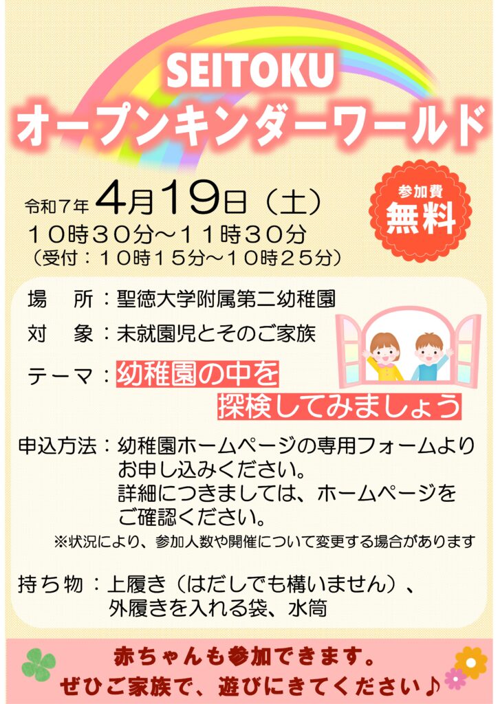 4月19日(土)SEITOKUオープンキンダーワールド(SOK)のお申し込み
