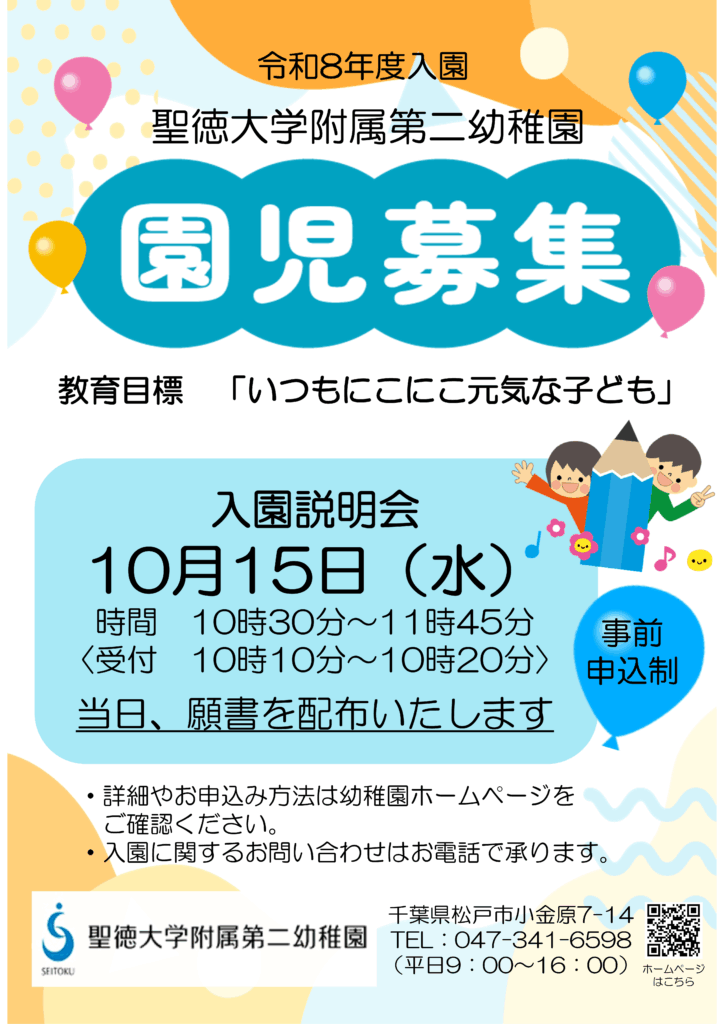 【令和8年度入園希望者対象】10月15日(水)入園説明会のご案内