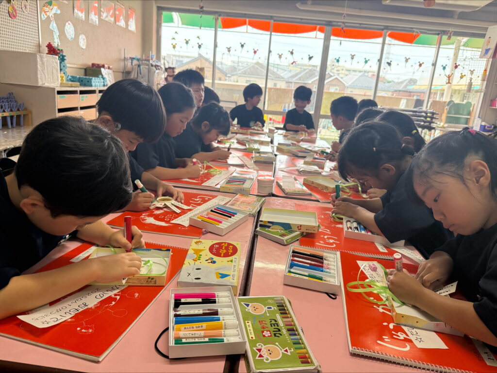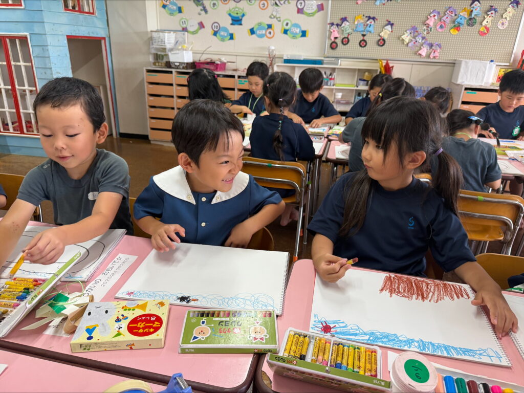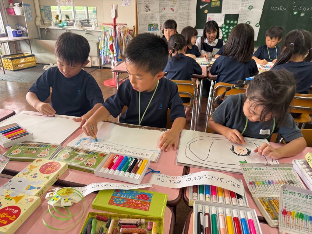 余韻を楽しんでいたことから自由画帳に運動会の印象画を描き経験発表もしました。